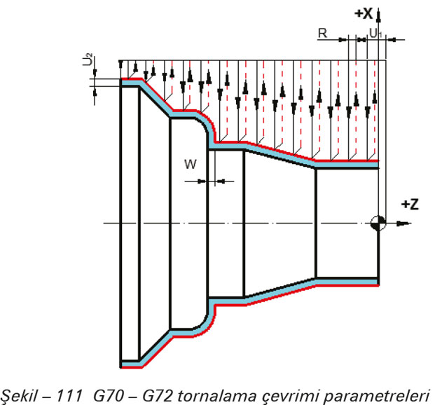 Bu çevrim alın tornalama ve alın tornalama yöntemiyle dış çap tornalama işlemlerinde kullanılır. Özellikle tornalama boyu kısa ve çaplar arasındaki ölçü farkının fazla olduğu dış çap tornalamalarında tercih edilir (Şekil – 111).